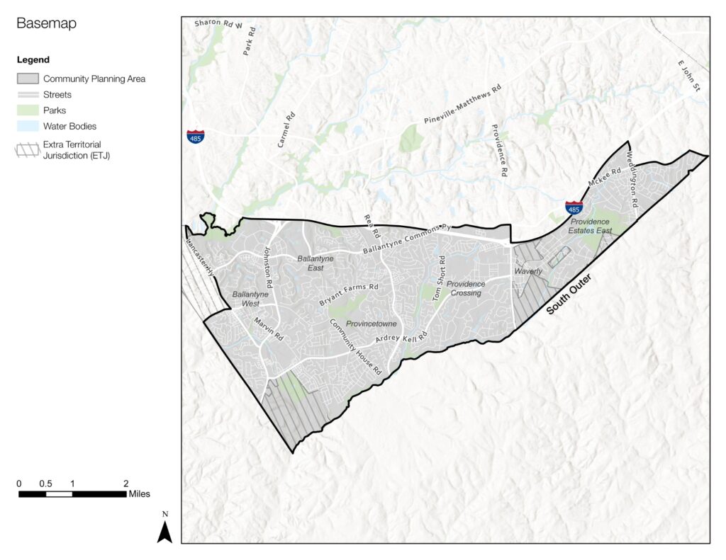 This Community Area Plan (CAP) is one tool to support implementation of the citywide Charlotte Future 2040 Comprehensive Plan and the Charlotte Future 2040 Policy Map, providing more detailed guidance for land use, building form, mobility, open space, and public facilities for the South Outer community-level geography. At this scale, the South Outer CAP provides a coordinated, efficient, and effective structure for identifying nuanced and locally-specific needs and priorities. It also provides a structure for developing strategies and recommendations to address those needs and priorities and for contributing to the community’s overarching goal to create a more equitable Charlotte.